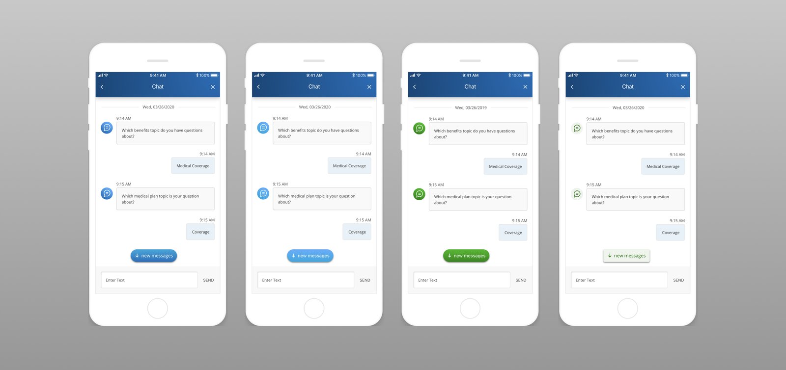 Exploratory designs for the new message indicator.